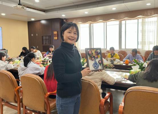 完成作品之后,现场转入温馨的茶话会环节。大家纷纷表示,这是一次充实而有意义的活动,不仅提升了大家的艺术修养和审美情趣,更增强了团队的凝聚力和向心力。相信图书馆的女职工们未来将以更加自信的姿态、更加饱满的精神,继续书写“柔肩担重任,芳华献书香”的美丽篇章。