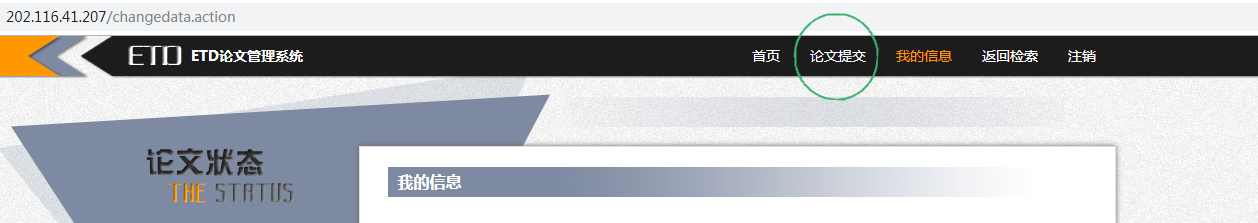 点击保存后,窗口不会关闭,此时点击网页上部导航的“论文提交”按钮进入提交页。